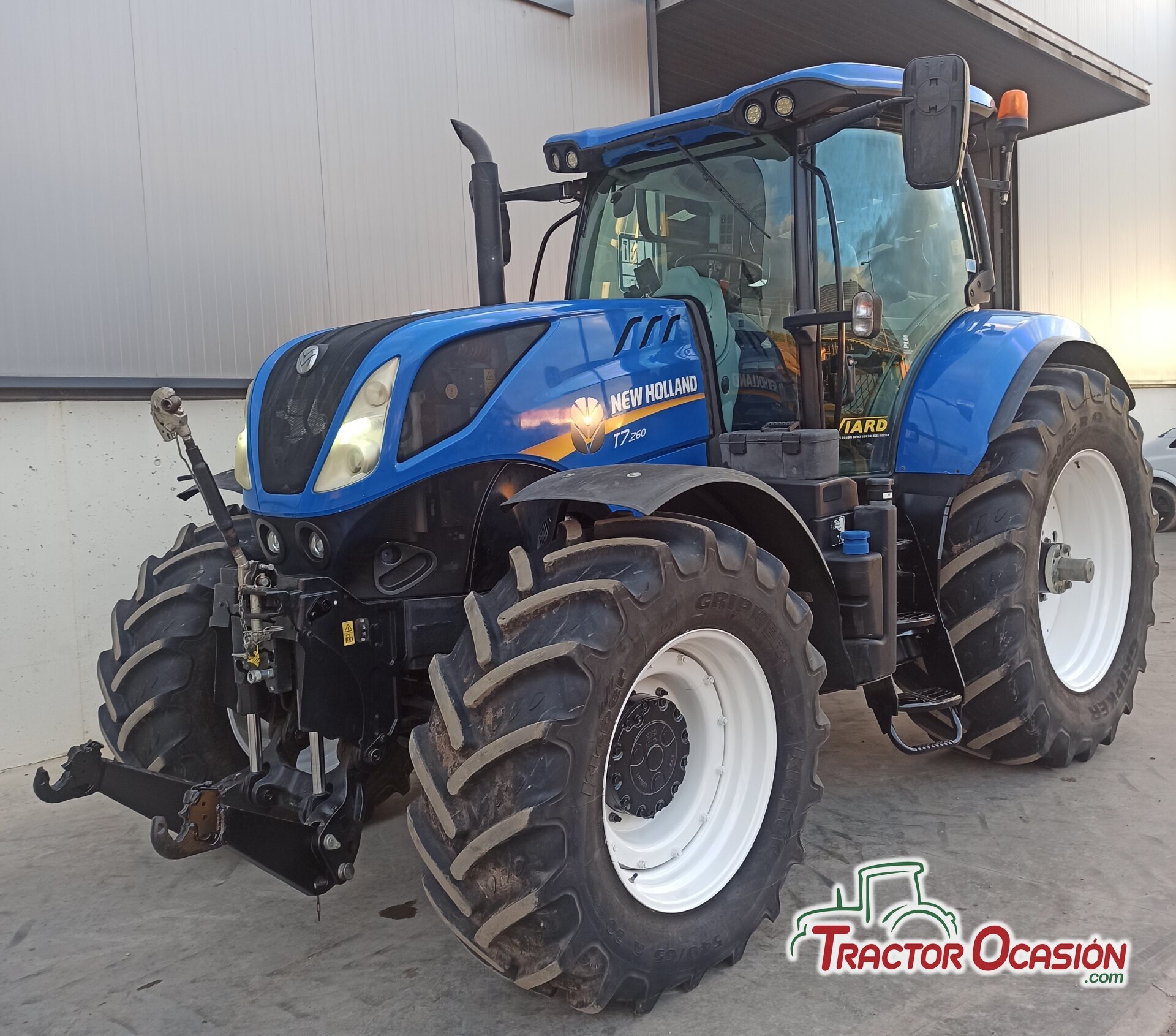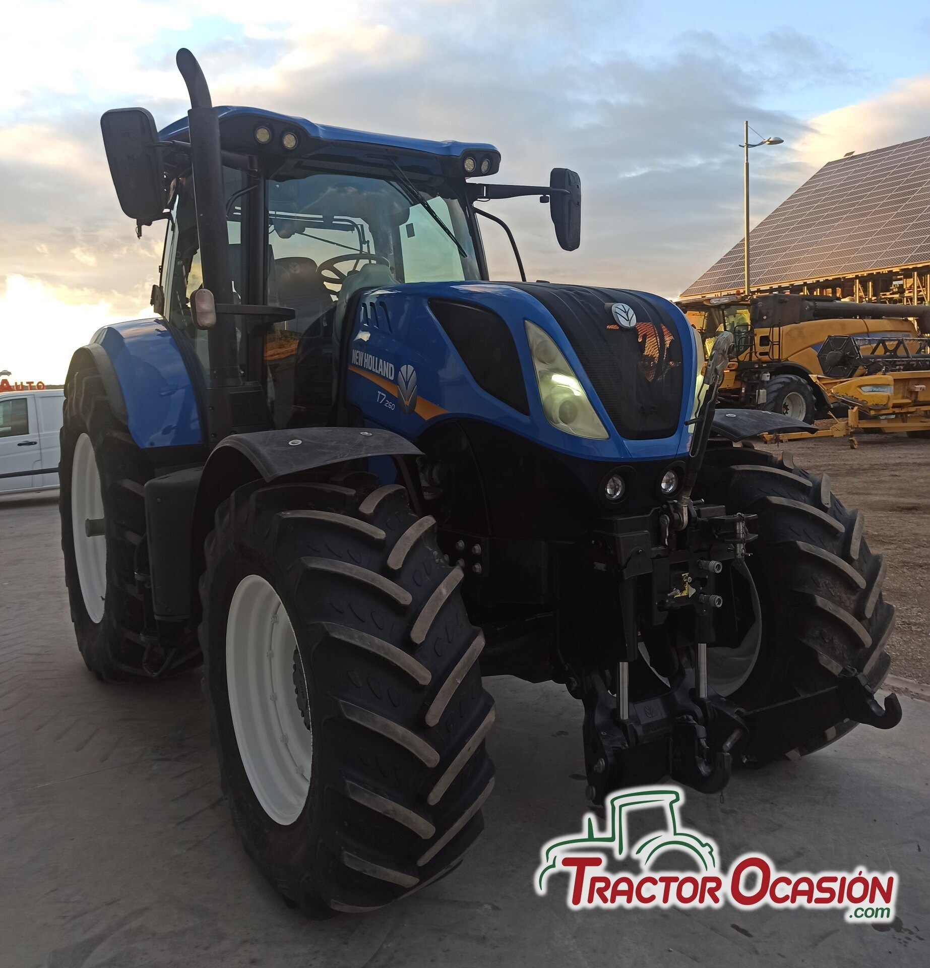 Se vende tractor marca New Holland modelo T7.260, transmisión Power Sifht, freno remolque hidráulico, 4 distribuidores electrohidráulicos, tercer punto delantero y trasero, enganches pitón y barra de tiro, tripunal delantero, asiento Dynamic confort, asiento acompañante, isobus, espejos retrovisores eléctricos, ruedas traseras 650/65 r42, ruedas delanteras 540/65 r30 , revisado y con garantía.