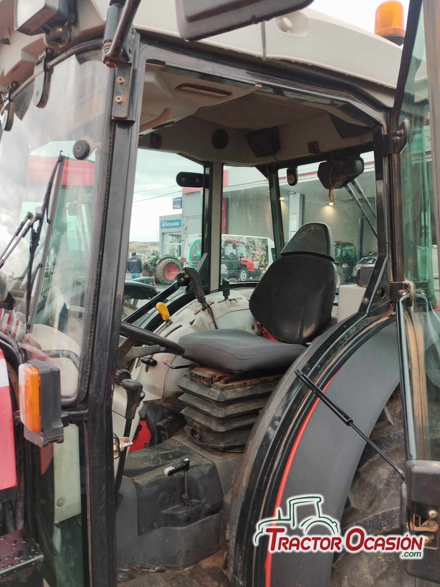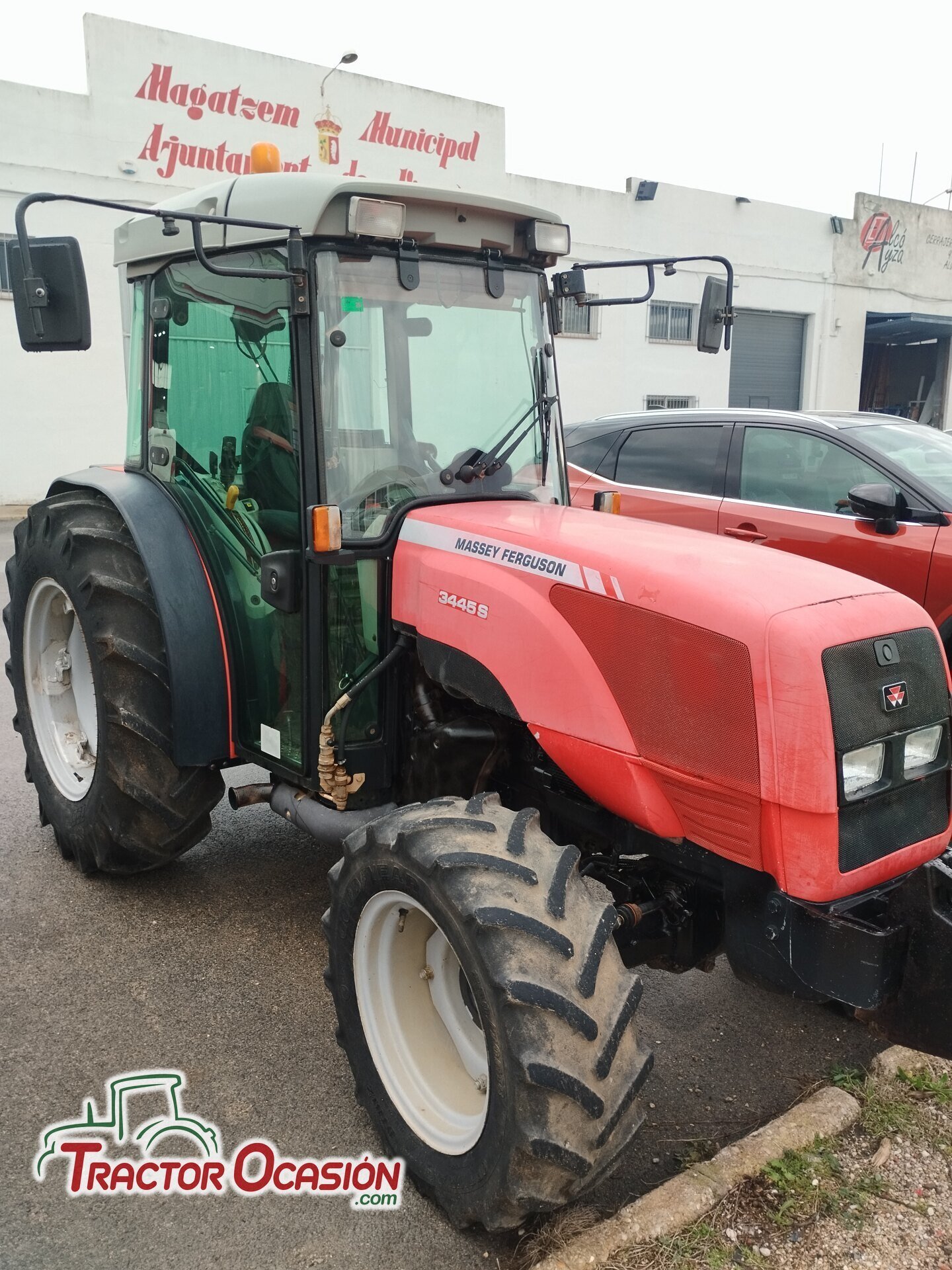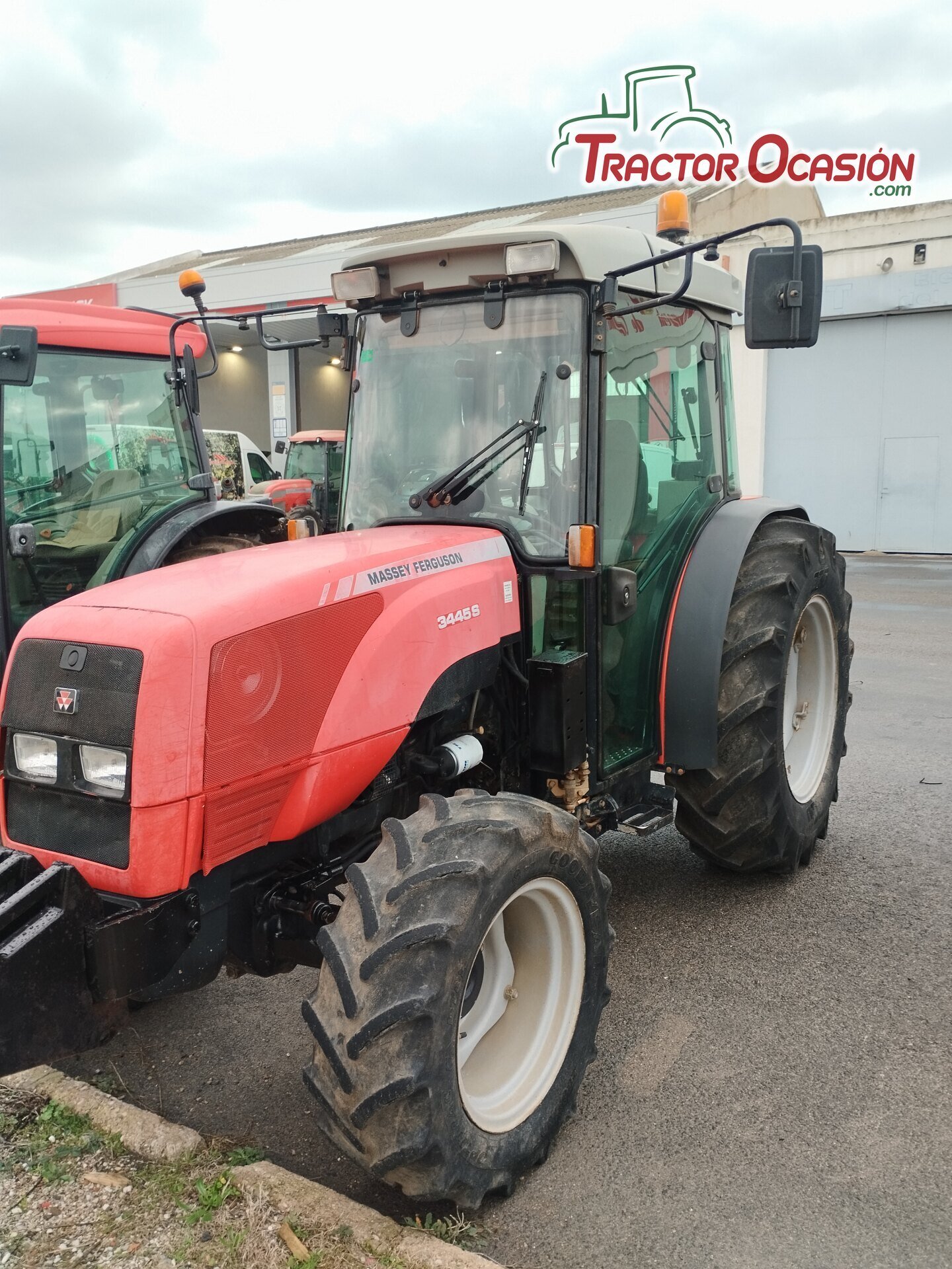 Tractor usado Massey Ferguson 3445, F, 95 CV, 6219 horas, cabina con aire acondicionado y calefaccion, funciona todo correcto, aceite y filtros cambiado, lleva asiento neumático, ITV pasada, cambio de nombre incluido, etc.