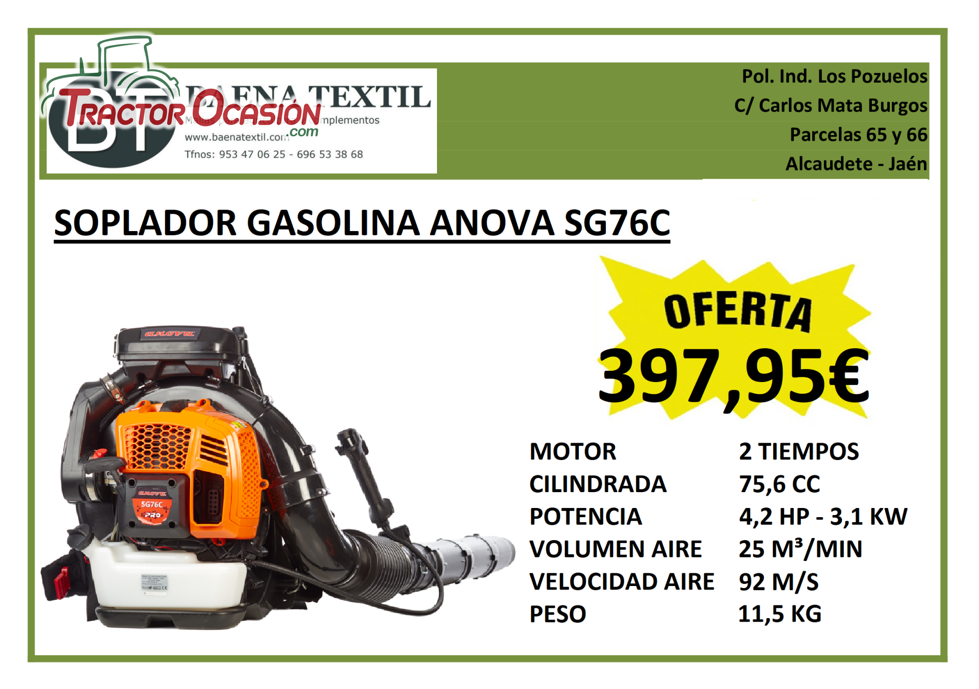 Pol. Ind. Los Pozuelos - C/ Carlos Mata Burgos, 65 y 66 Alcaudete (Jaén)
