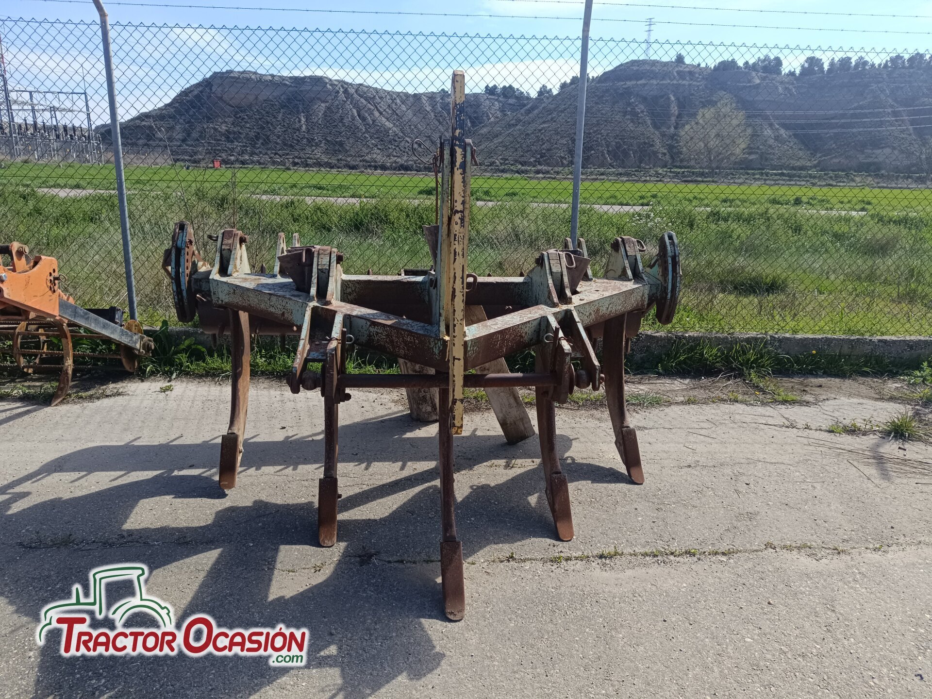 Subsolador desfondador de 5 púas. Con rodillo. de cabos. Anchura de rodillo 2.33 M . altura 1.44 m.